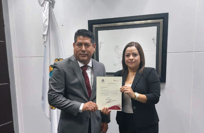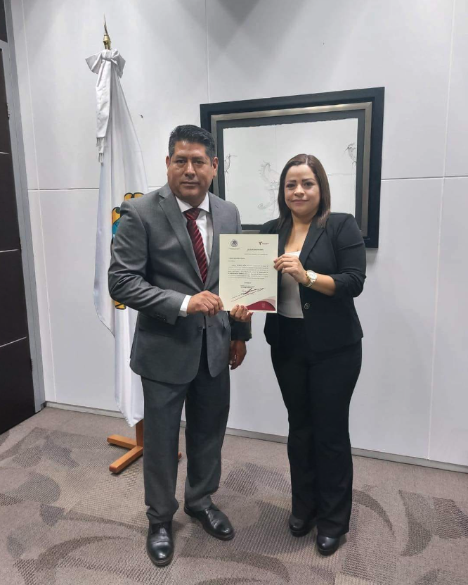 Este viernes 7 de octubre le fue entregado el documento oficial que acredita su nombramiento firmado por el Ejecutivo estatal, de manos de la Secretaria Veronica Aguirre de los Santos.